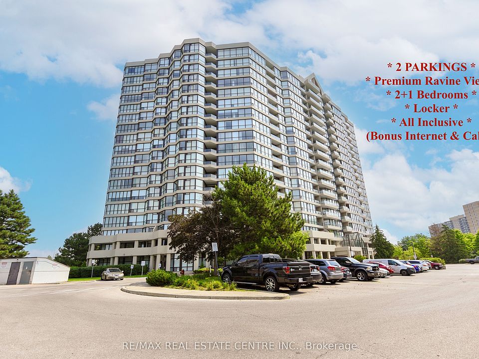 Immaculate & Stunning Luxury Condo Living With Exclusive RAVINE VIEW Of Mature Trees & Humber River! No Neighbours Behind! Very Spacious Layout With 2 Generous Size Bedrooms, 2 Full Washrooms, Bonus Den/Office/3rd Bedroom With Closet & Rare 2 OWNED PARKING Spots. Lots Of Natural Light NE Exposure. Renovated with Quality Modern Finishing's. Freshly Professionally Painted With New Baseboards Throughout. New Flooring In Laundry Room, Bright Lighting, New Finishes In Both Washrooms. Stainless Steel Appliances. Enjoy A Huge Beautiful Prime Bedroom With A Luxurious Ensuite Washroom & Soaker Tub, A Generous His And Her & Walk-in Closet, Walk-Out To Enclosed Exclusive Balcony. Extended Solarium- Perfect For Morning Coffee/Tea Or Evening Relaxing Conversations With Beautiful Scenic Views. The Suite Also Includes A Large Walk-in Laundry Room For Added Storage & Convenience. Owned Locker Unit. A Very Well-Maintained Building With Fabulous Amenities- 24 Hour Gatehouse Security, Outdoor Tennis Courts, Indoor and Outdoor Pools, Sauna, A Fully Equipped Gym, Squash Court. Prime Location Within Walking Distance To TTC Transit, Shopping Plazas, Malls, Schools And Library, Hiking Trails. Ease Of Dog Walking. Just Minutes From York University And Humber College, Easy Access To Hwy. This Suite Offers Both Comfort And Convenience. Maintenance Includes- ALL UTILITIES, INTERNET And CABLE TV. ***Enjoy Living In A Premium Condo Overlooking Ravine***. Or Great Income Potential.