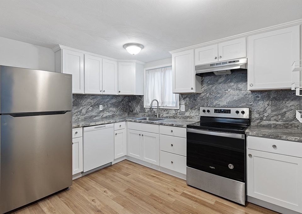 Location, location, location. This ground floor unit boasts some seclusion while simultaneously offering quick access to the highway, shopping, and restaurants. Take advantage of recent renovations of flooring, paint, and fixtures in this newly bright space that is turn-key. This residence presents a canvas ready for your personal touch. This 1968-built condominium represents a solid investment in a desirable location. Bathroom renovated late 2024 with walls, flooring, ceiling, vanity, new kitchen floor in 2021, new kitchen in 2022, new carpet in bedrooms in 2024 as well as freshly-painted. All that is required is for you to move in and make it your own home. Come by, fall in love, and make an offer to reach your goal to own property in a desirable Massachusetts town. Cash buyers and buyers who have performed due diligence with lending are welcomed in this move-in ready property.