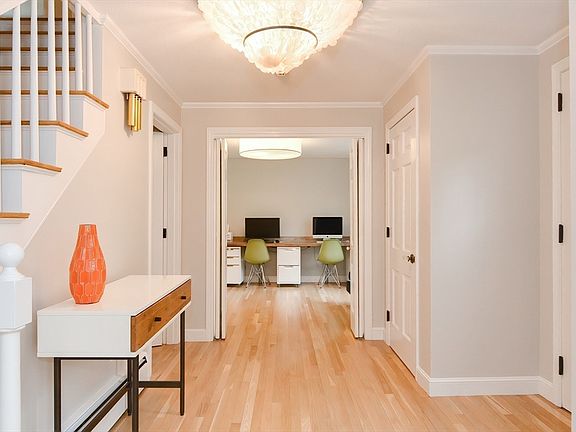 This beautifully expanded and enhanced garrison colonial offers a harmonious blend of traditional charm and modern convenience. At the heart of the home lies an inviting living and entertainment area, featuring a stunning, well-appointed kitchen, an open dining and family area, a versatile home workspace, and a spacious 3-season porch and deck that overlook the private backyard. A welcoming front hall leads to the elegant formal living room, where a cozy fireplace adds a touch of warmth and sophistication. Additional fireplaces are found in the family room and lower-level recreation room, creating more inviting spaces. The home is thoughtfully designed to accommodate a variety of interests and hobbies, with ample storage options that include 3 garage bays and expansive attic space. Upstairs, the primary bedroom boasts an adjoining dressing room for added luxury, while 3 generously sized and bright bedrooms share a large full bath. A wonderful place to call home.