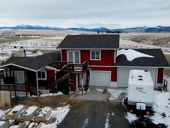 Situated on 5.08 versatile acres, this two-story manufactured home seamlessly combines comfort and functionality. The main floor features a modest kitchen that opens into a spacious living room, which leads to a private master suite, a second bedroom and two full bathrooms. All this offers convenience and ease for family and guests. Upstairs, a cozy bedroom connects to a versatile loft area with a half bath, perfect as a family gathering space or an additional bedroom suite. Below the loft area is an impressive three-car attached garage that provides ample storage for vehicles and equipment. Step outside onto your covered deck and enjoy the salt water hot tub while taking in the breathtaking views of the Tobacco Root Mountains. Beyond this, lies a larger fully fenced area that offers plenty of room for dogs, kids, and other activities. The remaining acreage is includes a chicken coop with a run and is perfectly suited for hobby animals or horses. Located in the heart of Montana’s stunning landscape, Whitehall is a gateway to outdoor adventures, including hiking, biking, floating, riding trails, and world-renowned ATV trails. This property offers the perfect blend of tranquility, recreation, and Montana charm. A definite must see!