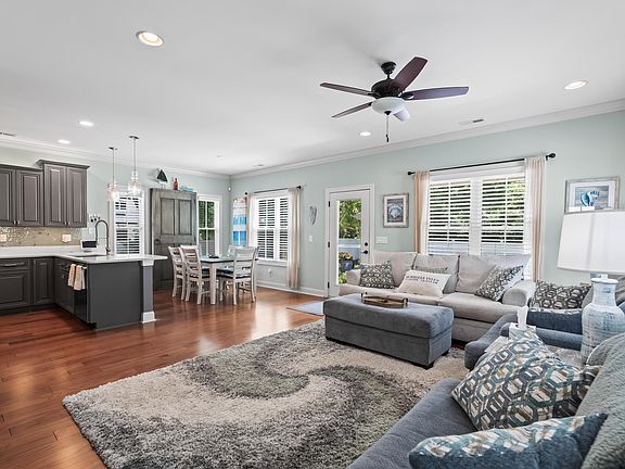 Welcome to 5 Ruth Street, a thoughtfully designed three-bedroom, two-and-a-half-bathroom home nestled in the sought-after Inlet Cove community in Murrells Inlet, South Carolina. Ideally located just one block from a public boat launch and a short stroll to the iconic Murrells Inlet Marsh Walk, this coastal property offers a lifestyle rich in saltwater breezes, fresh seafood, and scenic sunsets. Inside, the home showcases a bright, open layout with engineered hardwood flooring and tile throughout the main level. Carpet is thoughtfully reserved for the upstairs and all three bedrooms, creating a cozy, quiet retreat. Crown molding, recessed lighting, and smooth ceilings lend an elevated feel to every space. The living area opens to a private backyard designed for year-round enjoyment featuring a cement saltwater pool, remote-controlled retractable porch screens, and built-in water misters for ultimate relaxation. The covered patio is ideal for entertaining or unwinding in the shade, and all outdoor furniture, planters, pool equipment, and both the porch and living room TVs convey with the sale for a seamless transition. The chef’s kitchen is a highlight, equipped with a Bosch stainless steel appliance package including a gas range, French door refrigerator with freezer drawer, built-in microwave, and dishwasher. Quartz countertops, custom cabinetry with crown detailing, and a large breakfast bar offer both beauty and functionality. A custom-built bar shelving unit in the dining area adds a personal, stylish touch. Upstairs, the spacious primary suite offers a peaceful escape with a double tray ceiling, crown molding, and a spa-style bathroom with dual vanities, a step-in tile shower, private water closet, and a large walk-in closet. Two additional bedrooms and a full guest bathroom round out the second level with flexibility for guests, home office space, or family. Smart home features include WiFi-enabled thermostats, Alexa-controlled lighting on the main level, and a comprehensive exterior security camera system. The home also includes a dedicated laundry room, a main-level powder room, and a two-car garage with a built-in storage system that will convey. A full privacy fence surrounds the backyard for added tranquility and peace of mind. Located in the heart of Murrells Inlet, this home offers quick access to the area's best golf courses, pristine beaches, waterfront dining, live music venues, and boutique shopping. Essential conveniences like grocery stores, medical offices, banks, and pharmacies are just minutes away, making this home as practical as it is picturesque. Whether you're searching for your next full-time residence or a second home near the water, 5 Ruth Street delivers the best of coastal South Carolina living. Contact the listing agent, or your Realtor, today to schedule your private tour.