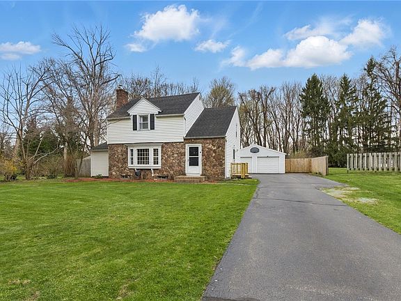 Open Sat 4/26 11am-1230pm. Move-in ready and full of charm, this updated colonial offers great space and modern comfort in a fantastic Greece location. The clean oak kitchen features a tile backsplash and opens to a spacious entryway/mudroom, convenient first-floor half bath, and a versatile office or walk-in pantry. Enjoy formal dining and a large living room with LVT flooring and a cozy wood-burning fireplace. Upstairs are three bedrooms, including a generously sized primary (11x18) with a walk-in closet, an updated main bath, and two additional good-sized bedrooms. The fully fenced backyard is private and expansive with a patio, 12x16 shed, and a 24x24 2.5-car detached garage—perfect for storage, cars, and toys. Vinyl siding and windows offer low-maintenance living. Incredible value at this price! Delayed Negotiations till Tuesday 4/29 at 1pm! Sqft measured by seller.