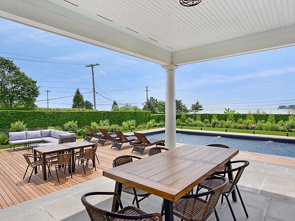 This stunning home, with its open floor plan and breathtaking water views of Shinnecock Bay, provides a serene escape from daily life. Designed to accommodate up to 7 guests, the property boasts 4 spacious bedrooms and 4 well-appointed bathrooms, ensuring ample space and comfort for families or groups seeking a luxurious getaway. The interior is bathed in natural light, creating a bright and airy ambiance that invites relaxation. Multiple sitting and dining areas are thoughtfully arranged to foster both intimate gatherings and larger social occasions. Nestled on a beautiful private block, this home features an expansive deck with a gas BBQ and outdoor dining setup, making it an ideal setting for memorable alfresco meals.The exterior amenities of this gem are nothing short of spectacular. Total privacy is guaranteed, allowing guests to unwind in complete tranquility. The expansive deck/balcony is a highlight, equipped with a dining table and a gas BBQ, perfect for enjoying delicious meals while soaking in the stunning water views. Multiple sitting areas scattered across the deck offer inviting spots to enjoy cocktails and conversation as the sun sets over the bay. The property also offers plenty of free parking, ensuring convenience for all guests. The expansive yard provides ample space for outdoor activities and leisurely strolls, all while being treated to the serene backdrop of Shinnecock Bay's sparkling waters.As you step inside, you are greeted by an open layout that seamlessly integrates the living, dining, and kitchen areas. The abundant natural light enhances the welcoming atmosphere, making every corner of the home feel warm and inviting. High-speed WiFi ensures that guests can stay connected, while a washer and dryer add a touch of home convenience. The air-conditioned interiors provide a cool respite during warm summer days. The living room, with its comfortable seating and elegant decor, flows effortlessly into the dining area and gourmet island kitchen. The kitchen is a chef's dream, featuring top-of-the-line appliances and a coffee maker, allowing for the preparation of everything from simple breakfasts to elaborate dinners. A dedicated work-from-home space ensures productivity for those needing to attend to business, while a pool table and treadmill offer entertainment and fitness options, making this home a versatile retreat for all ages.The bedrooms and bathrooms are designed with comfort and relaxation in mind. Each bedroom is furnished with fresh linens and all the essentials needed for a restful night's sleep. The primary suite features a luxurious bathroom, providing a private sanctuary for relaxation. The additional bedrooms are equally inviting, with tasteful decor and comfortable bedding. The bathrooms are well-appointed with modern fixtures and thoughtful touches, ensuring a spa-like experience for guests. Whether you're starting your day with an invigorating shower or winding down with a soothing bath, the amenities provided will enhance your stay.This exceptional home is also ideally located near some of the area's top attractions. Golf enthusiasts will appreciate the proximity to renowned courses such as Shinnecock Hills Golf Club. For those looking to enjoy the sand and surf, the beautiful beaches of Southampton and Hampton Bays, including the famous Coopers Beach, are just a short drive away. Whether you're planning to spend your days golfing, exploring the local beaches, or simply relaxing in your private oasis, this home offers the perfect base for an unforgettable vacation.This expansive modern home between Hampton Bays and Southampton is the epitome of luxury and comfort. With its open floor plan, amazing outdoor space, and a plethora of amenities, it promises a memorable and enjoyable stay for families and groups alike. Escape the everyday and make this stunning property your home away from home, where comfort, convenience, and tranquility await.This property has a separate rental space on site with a full-time tenant. The entrances are entirely separate and there are no shared spaces whatsoever.