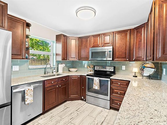 Fully updated 2-bedroom, 2-bath home with a versatile den perfect for an office or guest room. This bright and inviting home is filled with natural light and features impact windows, all stainless steel appliances, a newer AC unit, and a new refrigerator, washer, and dryer. Enjoy an open layout with modern finishes and updated bathrooms, and a private large outdoor area with room to add a pool. This home also features a 1 car carport and storage shed. Located just minutes from shopping and dining, and under 2 miles from the beach. Enjoy living in the heart of Deerfield Beach.