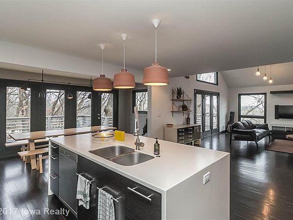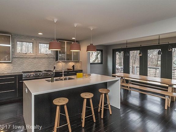 Contemporary open floor plan, windows with scenic views and private wooded lot. Espresso dark stained kitchen cabinets, updated appliances, and center island. Hardwood floors, finished walk-out lower level. Great South of Grand location, near schools.