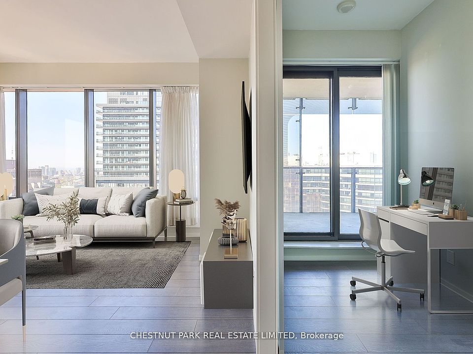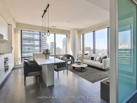 Historic facade welcomes you to this stunning southwest corner unit in the heart of downtown. Sun filled open airy living space with soaring 9ft ceilings, floor to ceiling windows & light coloured design palette. Extra large balcony with unobstructed panoramic views of the city skyline and spectacular sunsets. Never tenanted this unit is meticulous & spotless. Den has walk out to private balcony & can easily be a second bedroom. Primary suite has luxurious ensuite & double closet. The open kitchen High end Miele integrated appliances and the large extended island acts as a dining table. Owned STORAGE LOCKER & parking space. Superlative amenities include numerous lounge areas to chill out as well as peaceful work areas & library. Incredible gym, yoga room, billiards, hot tub, steam room & sauna. There is also a party room with fully equipped kitchen, piano room & stunning rooftop deck with BBQ's. Easy dog washing! The building is pet friendly with a Pet Care room. This unbeatable location is just steps to U of T, Metropolitan University, Yorkville, Financial district, Eataly & numerous shops & dining options. Commuting is a breeze with Wellesley & Museum station minutes away. 4 dedicated elevators so no wait times. Well managed building with new fob to floor security & low maintenance fees. Guest suites, 24 hour concierge & visitor parking. This is the picture perfect urban condo!