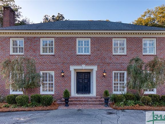 This elegant, stately 5BR, 3BA Colonial Revival home is perfectly positioned on a half-acre site at The Bluff, a vibrant, neighborhood nestled on the Intercoastal Waterway just 5 minutes east of downtown Savannah. This breathtaking brick home offers high-quality construction, immaculate interiors, floor-to-ceiling windows, wide-plank wood floors & plenty of built-in storage. Originally built by Bert Berry in 1968, this spectacular residence's main floor features formal living & dining rooms, updated kitchen with sleek granite countertops, large family room & bedroom with ensuite bathroom. Upstairs, the layout offers 4 spacious BR's, 2 Baths, office/study, including a luxurious primary suite with walk-in closets & a large, renovated bath. Enjoy island breezes as you relax on the brick patio or in the grassy backyard with metal fence that’s perfect for kids & pets. Prime location near the Savannah Golf Club with easy access to downtown Savannah, the islands & Truman Pkwy.