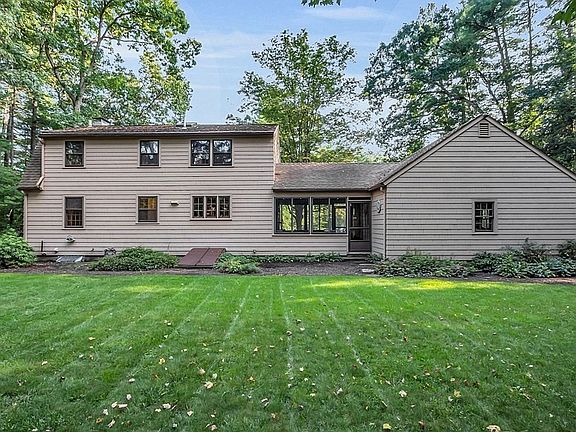 DESIRABLE LOCATION in favorite SOUTH WESTFORD neighborhood w/ sidewalk & no through traffic! Open floor plan between kitchen (wood cabinets, granite counters, SS appliances) & room for gathering & dining. FR receives ambiance from wood-burning fireplace. 1st floor bonus room next to full bath for home office, TV room, playroom or guests. Bedrooms, some with window seats & built-in cabinetry, joined by sky-lit hall w/ 2nd full bath. 600+ sqft could be finished in LL. Fantastic 3-SEASON SUNROOM overlooks both expansive, level & private backyard & front yard. Original owners have METICULOUSLY MAINTAINED home, replacing: 4-BR septic, roof, exterior paint, HVAC, oil tank, hot water heater, garage door & bulkhead. Steps to O’Brien Farm conservation trails; short drive to rail trail (walk, bike, roller blade), Jack Walsh complex (tennis, basketball, playground, soccer), Butter Brook Golf course & shops, restaurants, gyms & healthcare on Route 110. **OFFERS DUE 10/3 BEFORE NOON**