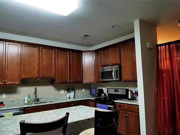 Beautiful like new town home in great location. Upgraded granite counter tops and center island. Hardwood floors. Walk-out basement. Sliding doors leading to deck. Amenities include gym, party hall, card room, playground, shuttle to station. Day care center and Pediatrician located within the community. Gated community. Just minutes away from train station.Showings begin on 10/22.