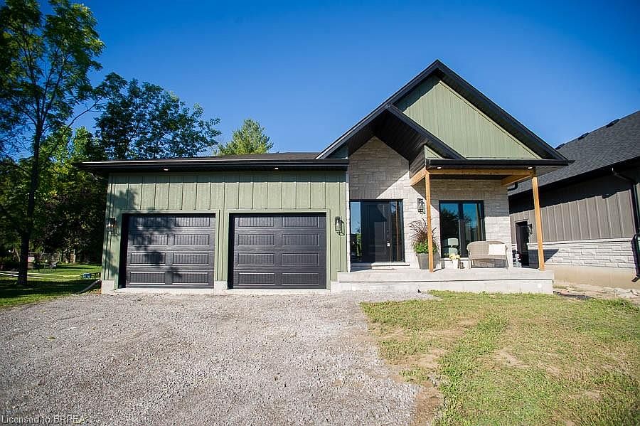 Welcome to 5 Scott Drive, where timeless craftsmanship meets modern luxury in the heart of Port Dover. This brand new custom-built bungalow offers nearly 2,000 sq. ft. of main floor living, designed with high-end finishes and thoughtful details at every turn. From the moment you arrive, the striking board and batten exterior accented with stone sets the stage for the quality within. A charming front porch invites you to enjoy your morning coffee or unwind with a glass of wine as the day winds down. Step through the front door and into the impressive living room, where a stunning fireplace, and expansive windows create a bright welcoming space filled with natural light. At the heart of the home, the designer kitchen boasts quartz countertops, built-in appliances (to be installed before closing), a large island, a "hidden" walk-in pantry, and direct access to the covered back back -perfect for entertaining or peaceful evenings outdoors. The expansive dining area, stretching over 22 feet, ensures there's room for every gathering, big or small. Practicality meets style with a convenient laundry/mudroom off the garage and a main floor powder room for guests. The primary suite is a private retreat, complete with a spacious walk-in closet and a spa-inspired ensuite featuring double sinks and a luxurious walk-in shower. Two additional bedrooms, each with their own walk-in closet, are connected by a Jack&Jill bathroom with double sinks, making this the perfect layout for families or hosting guests. The possibilities continue downstairs in the full basement with 9' ceilings, already drywalled and awaiting your personal touch. A roughed-in powder room is ready to be finished, adding even more convenience to the expansive lower level. Set within a short 15 min walk to downtown Port Dover & the beach, this home offers not just a place to live, but a lifestyle. From marina days to dining and boutique shopping, every amenity is just minutes away.