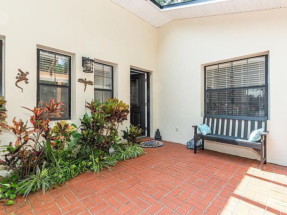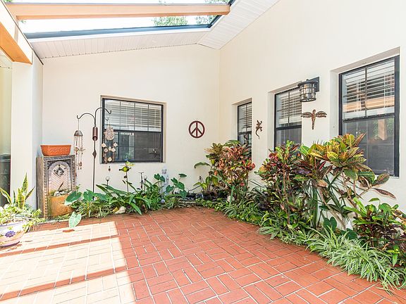 It's 3 blocks to sand, sea and unlimited sunshine and then it's back home to our favorite St Augustine Beach neighborhood. Boasting the best tree canopy at the beach, the sun-dappled street is so welcome after a day of surfing and collecting shells. Architecturally speaking, 5 Sea Oaks has always been appealing with its private courtyard entry and contemporary design. Set back from the street with a driveway that will happily accommodate all your friends when they come to visit, the orientation makes the entrance nice and private. Courtyard is a blank canvas waiting for your imagination to create the best use for your lifestyle. A short foyer opens to a wonderful gathering area under a lofty ceiling and there's a huge stone fireplace acting as the main focal point. With such an abundance of space, you can create a couple of seating areas and still have ample room for a dining room table that will make you the Thanksgiving host every year. Kitchen is tucked out of view of the front door but is open to living and dining. A long bar separates counters, cabinets and appliances from the casual seating on the other side of the stepped up bartop. 2 or more can easily work together in this generous kitchen which enjoys natural light through a large window overlooking that courtyard. Pantry closet, laundry room and access to the garage are just off the kitchen, and sliders open to a small screened porch. At the back of the house, a flex room is ready to be whatever you need it to be - 3rd bedroom, office, gym or some combo. You can also access the south patio from here. Main bedroom is really big and has two walls of windows facing the back and side yards. Bathroom has a 50s ambiance but there is room to make it bigger and more contemporary without compromising the bedroom. Hall bath was renovated recently and has an excellent walk-in shower. 2nd bedroom faces the front yard and it's another large room with a walk-in closet. Backyard is supremely private thanks to a tall fence and nice tree canopy at the rear. There's another patio by the main bedroom and the north side of the yard is paved so your boat or camper has its own parking pad tucked inside the fence. Oversized garage can hold 2 vehicles and all your beach toys (electric car charger already installed). Masonry construction and Flood Zone X-shaded takes away the worry and you can put your imprint on this cool house to make it your own. The Sellers loved their 13 years in the Sea Oaks neighborhood and we think you will too.