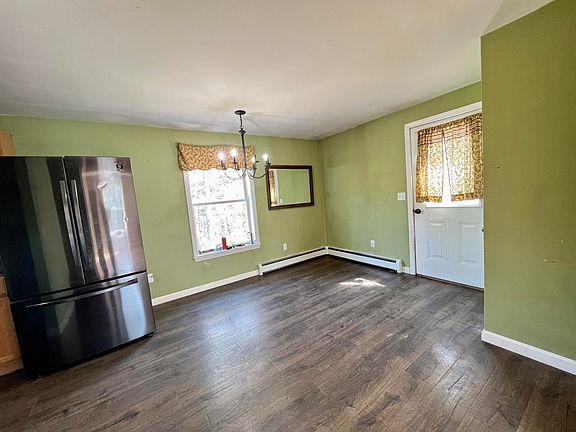 Cape style home for sale in Ellsworth, Maine. The first floor features a kitchen, dining room, living room, a bedroom and a full bathroom. The second floor features 2 bedrooms and a full bathroom. There is a full basement with a finished room with potential for additional finished space. The home sits on a 1.01+/- acre surveyed lot and has a private well & septic.