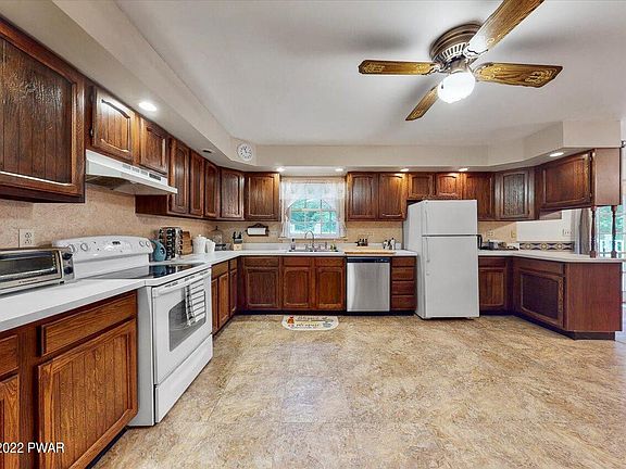This lovely Cape Cod, 4 bedroom, 2 1/2 bath home with huge kitchen & bonus space over the deep 2 car garage on 3 acres, new roof (replaced May 25, 2022), new gutters with leaf guards installed is the perfect place to raise a family. Great schools, Wallenpaupack Area schools are some of the best in the region! Plenty of room for kids to roam! Great multi-level deck & fire pit are terrific for relaxing and awesome for parties! 3 acres means your septic mound is not your ''back yard.'' That's toward the back of the property, pretty much out of site, as it should be.Peaceful, serene, secluded but not too far from civilization! 2 hours to NY or NJ and 20 minutes to Dickson City for big store shopping. Minutes to Hawley or Hamlin.STR's allowed., Beds Description: Primary1st, Beds Description: 2+BED 2nd, Baths: 1 Bath Level 1, Baths: 1 Bath Level 2, Baths: 1/2 Bath Lev 1, Eating Area: Dining Area, Beds Description: 1Bed1st