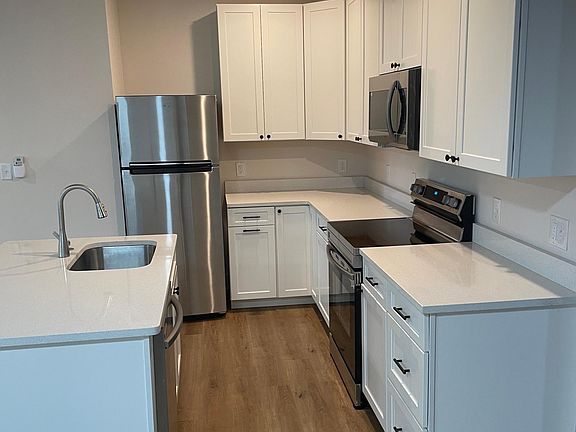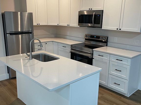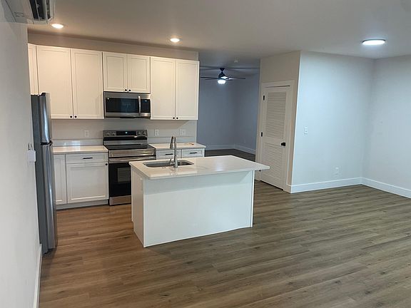 Lower level studio apartmentMitsubishi mini-splitOpen kitchenKitchen islandLarge bedroomLvp flooringStainless appliances