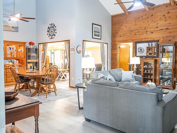 As you enter, you're welcomed by soaring vaulted ceilings with exposed wood beams, a stunning stone wood-burning fireplace, and an open layout ideal for entertaining. The dining area flows seamlessly into the living space, while the kitchen features solid wood cabinetry with updated hardware and modern appliances.