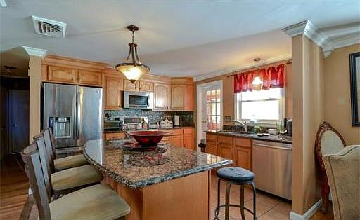 Exquisite Sunshine filled 4 BR ranch with Open floor plan and Finished basement! Most of the work done, just move in. Kitchen offers Granite counters, Tiled backsplash, and large Island w/seating! Master BR boasts his/hers closets w/built in shelving w/bonus area leading to master bath. Master bath includes tiled shower and W/D hookups. Central AC for uncomfortable hot days and Cozy Fireplace for cooler nights. Turn off the lights and enjoy the ample natural lighting. Basement finished for enormous family room! Brick pathway leads to large brick patio area and privacy fence encourages the perfect outdoor entertaining space!