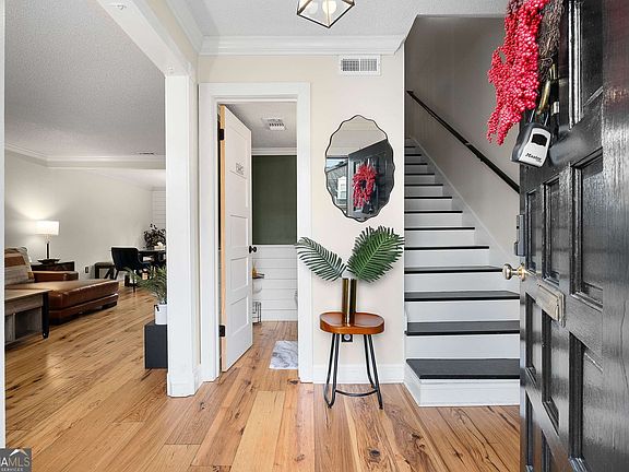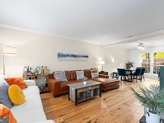 Updated and move-in ready home in sought-after Westover Plantation. The main level features wide-plank hickory flooring, shiplap accents, and an open layout that flows into a refreshed kitchen with quartz counters, upgraded cabinets and tile, stainless steel appliances (new microwave, dishwasher, and gas range), plus a large eat-in island with extra storage. The adjoining laundry room includes a newer washer, dryer, water heater, and furnace. Upstairs are two bedrooms, each with its own full bath, updated with modern finishes. Both bedrooms received new hardwood/laminate flooring in 2022, and the primary suite includes added closet shelving and a renovated bath with a proper walk-in shower and glass enclosure. A private courtyard opens to a large green space-an uncommon bonus-while the unit's location near the front gate provides quick access in and out. Residents enjoy extensive amenities: gated entry, swimming pools, clubhouse, gym, tennis and pickleball courts, dog walk areas, walking paths, reserved parking plus guest spaces, and community EV chargers. The HOA covers weekly doorstep trash pickup, water, exterior maintenance, lawn care, and front landscaping. Don't miss your opportunity to own a home in the thriving Westside of Atlanta.