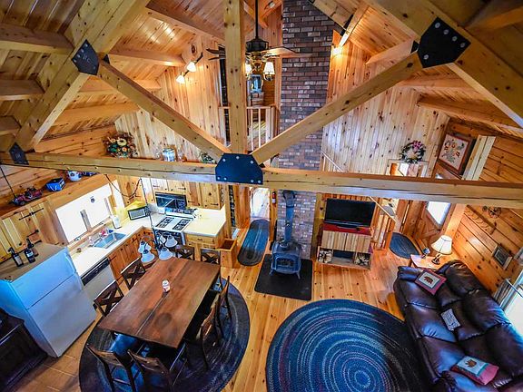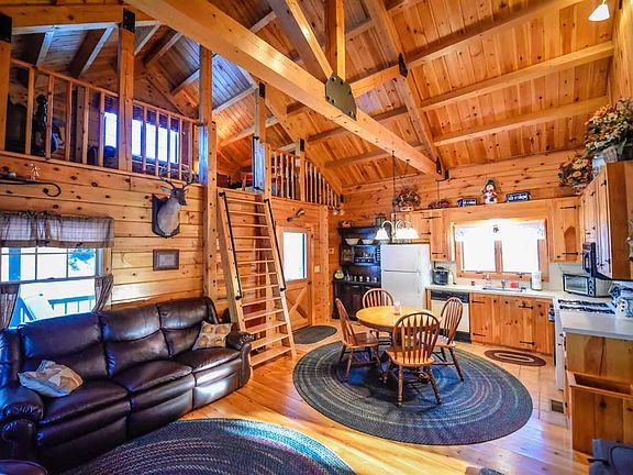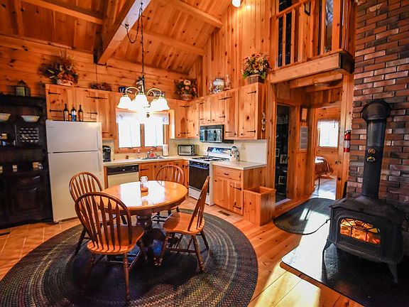 Now this is a Vermont treat to talk about. Beautiful natural woodwork everywhere you look in this comfortable log home in the Chimney Hill community of Wilmington, Vermont. 3 full bedrooms, an additional bedroom without legal egress, a large sleeping loft, 2 baths, a large open concept living area with vaulted ceiling, exposed joinery, wood stove, and kitchen, lower level family room with wood stove, large mudroom, hot tub, and updated utilities. There is a large covered porch for easy three season use no matter the weather, which could easily be screened in, as well as a main floor side deck and entry for easy access. Private back yard perfect for a fire pit. This home has been lovingly maintained and has all the great features you would want in a getaway including nearby access to Mount Snow ski resort, direct VAST snowmobile trail access, trails within walking distance to hike Haystack peak for one of the best views of the valley, or along the ridge line to Mt Snow, and convenient Chimney Hill amenities including club house, gym, indoor and outdoor pools, hot tub, theater, tennis court, basketball, fishing ponds, ice skating, and a la carte services including plowing, mowing, snow removal, trash, etc.