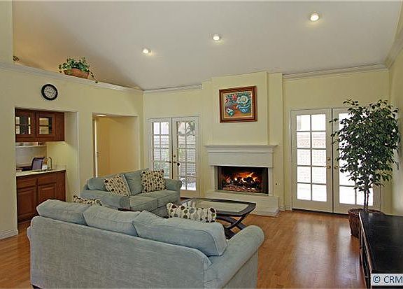 Rare find single level gated courtyard entry home with beautiful landscaped frontage situated on a large corner lot. This magnificent bright and airy executive home offers cathedral ceilings, fireplace, formal dining, breakfast nook, build-in Bookshelves. A wonderful Chef s kitchen with ample storage and counter spaces. recess lighting, french doors, hardwood floors, extra large master suite with separate seating area. Remodeled master bath with his and her vanity, seperate tub and shower and heated flooring; separate laundry room, central air and heat. Wraparound yard with patios with easy care landscaping! This a wonderful California living and entertaining year round. A best buy!