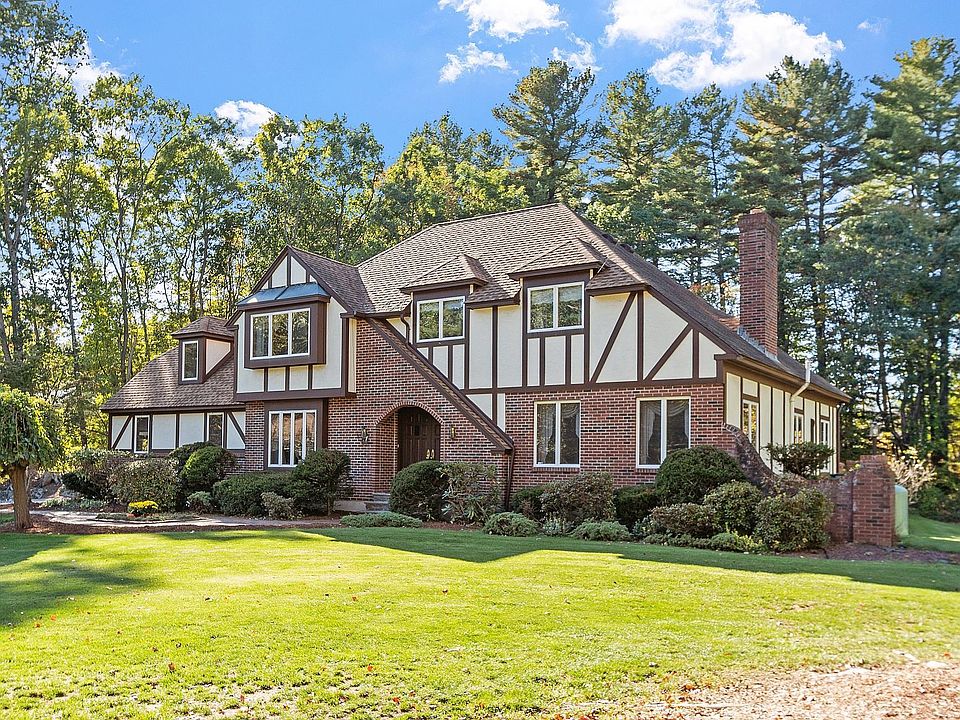 Elegant Tudor on 1.5 Acres with Heated Pool – Premier Cul-de-Sac Setting! Timeless Tudor-style residence is set on a serene 1.5-acre lot in one of the area’s most desirable neighborhoods, just minutes to schools and town center. Thoughtfully updated and displaying pride of ownership throughout from roof to mechanical systems, this 10-room 4-bedroom home combines classic architecture with modern comfort. The first floor offers an inviting eat-in kitchen, formal dining and living rooms, a spacious family room, laundry area and a beautiful heated sunroom overlooking the newly resurfaced heated gunite pool. Large shed located in fenced in pool area. Upstairs, the primary en-suite features a dressing area and adjoining private office. Additional highlights include AC, central vac and new driveway.