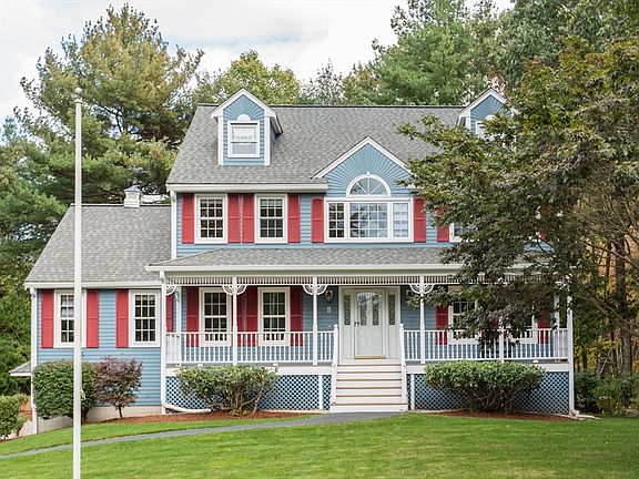Stunning 3 bed, 2.5 bath colonial situated in one of Wilmington's most prestigious neighborhoods. First floor boasts a family room with cathedral ceilings and fire place, formal dining room, kitchen, generously sized office, and beautiful 3 season room. Recently updated, the first-floor half bath and second-floor full bath offer modern amenities. Upstairs, three spacious bedrooms await, including a primary bedroom with an en-suite bathroom featuring a jacuzzi, a fireplace, and a large walk-in closet. The finished basement provides additional space for a gym/game room/office and includes access to the two-car garage. The property, located on a lovely lot with a gazebo, manicured lawn, and stunning views, boasts a newly installed septic system. Close to a newly constructed park, basketball, and tennis courts, and less than a mile from the commuter rail, this home offers both convenience and elegance.