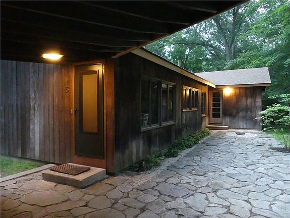 Classic lines and appeal for this mid century 3 bed, 1.5 bath ranch with some contemporary aspects and features. Enjoy this quiet, private setting in Kingston's Biscuit City. Easy walk to Potter Woods through the neighborhood. Perfect starter, or downsize, or for someone affiliated with or drawn to the beauty and options URI has to offer. Kitchen is well laid out with its little nooks and features, and its generous vistas, looking out to the expansive stone patio, mature trees, ferns, and pachysandra. There are many built-ins throughout and a fireplace in the living room. The garage with covered walkway is a nice touch. Good closets and full attic for your storage needs. New septic and furnace. Central air a definite plus. 5 Stonehenge has so much to offer. This is a special find. Subject to town approval of administrative subdivision.