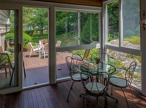 Situated on a 10,000+ square foot lot on a quiet side-street, this well-maintained three bedroom two bath multi-level home offers a bright and spacious living room, formal dining room, family room/office and eat-in-kitchen. Special bonus living space in beautiful 3 season room with walls of glass, vaulted ceiling with fan, mahogany decking and sliding doors leading to a patio overlooking the wooded yard. Additional: in-ground sprinkler system, 1-car garage and unfinished basement.