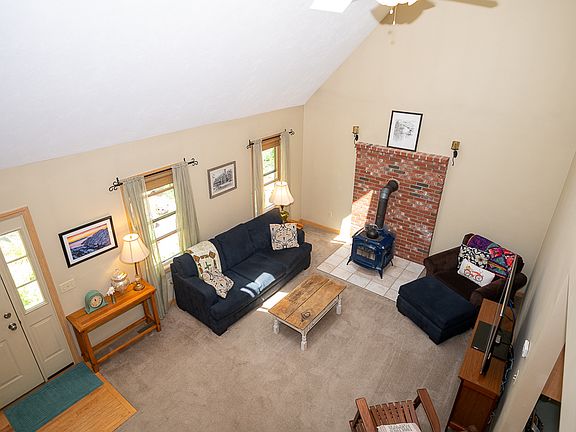 - Liv Dscrp: Flooring - Wall To Wall Carpet, Ceiling - Cathedral, Skylight, Ceiling Fan(s), Wood / Coal / Pellet Stove
