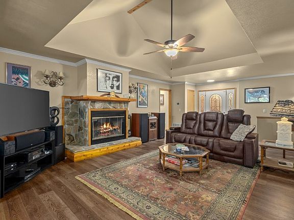 - Ceiling Fan(s), Cathedral Ceiling(s), Eat-in Kitchen, Pantry, Quartz Counters, Walk-In Closet(s), Window Treatments, Multiple Living Areas, Storage, Sun Room, Workshop