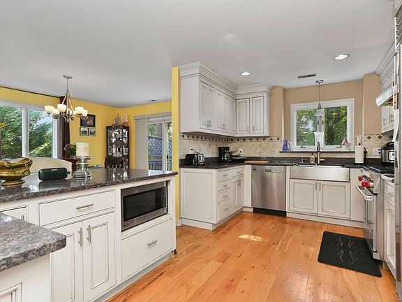 Modern u-shaped kitchenRecessed lightingBreakfast barPrivate primary suiteFinished walk-out lower levelGranite countertopsOpen-concept main level