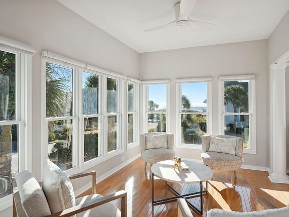 OCEAN VIEWS!! STEPS FROM THE BEACH! 5 Surf Lane is a second-row beach home featuring 4-bedrooms and 3.5-bathrooms in the Sea Oats community on Isle of Palms. The bright and airy home features ocean views from both the living room, kitchen, sunroom and patio deck! The open concept floorplan is perfect for entertaining with high vaulted ceilings and a kitchen which includes a Wolf range. The porch deck with ocean views is accessible from both the front entrance and also master bedroom to watch the pelicans fly by, sunrise or enjoy your morning coffee. There is a beautiful community pool steps away from the back door. Property has an elevator servicing the first floor of the home.Beneath the elevated home is an enclosed 2-car garage. There is an additional ground floor storage closet.Property is currently a vacation rental with strong booking history, making this a turnkey rental, second home or primary residence. Sea Oats is a private community of 12 homes on Isle of Palms which includes a private beach boardwalk. Sea Oats is one block away from the Wild Dunes Resort with Tom Fazio designed golf courses.