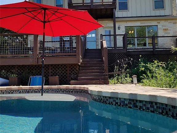 Amazing views and perfect family home offering pool, basketball court and spacious backyard.Master suite has a private deck overlooking the pool with great views.The home has attractive decor with beautiful tile floors in the downstairs area and wood laminate floors upstairs.From the living room you step out onto a large deck for entertaining.Currently the formal dining is being used as a workout room.The Refrigerator and storage bldg. do not convey.Hurry to call this your perfect home in Wimberley!
