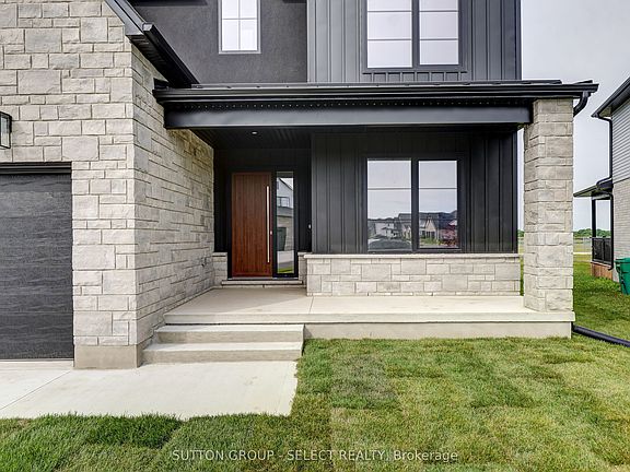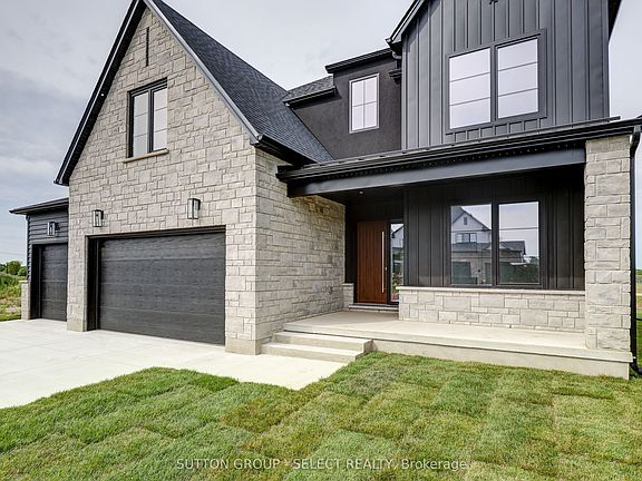 Just built in the desirable neighborhood of Talbot Ville Meadows. This elevation features generous stone detail, a high peaked roofline, and a 3.5 car garage. Located on a 140-foot-deep lot, backing onto open space. This 4-bedroom new build has 2855 sq ft of beautifully finished living space. The main floor has 9ft ceilings with large picture windows throughout. A mudroom off the garage that provides ample storage. An oversized office with double glass doors at the front entry. Custom cabinetry in the kitchen with quartz countertops & backsplash and a walk-in pantry. The large living room has a feature fireplace, anchored by 2 arched built-in cabinets. The upper floor has laundry with storage and folding counter, 9 ft ceilings, and walk-in closets in every bedroom. The primary bedroom offers a beautiful ensuite with a large walk-in double shower and a freestanding tub. Second bedroom also offers its own full ensuite. Superior design & quality built by Millstone Homes of London.
