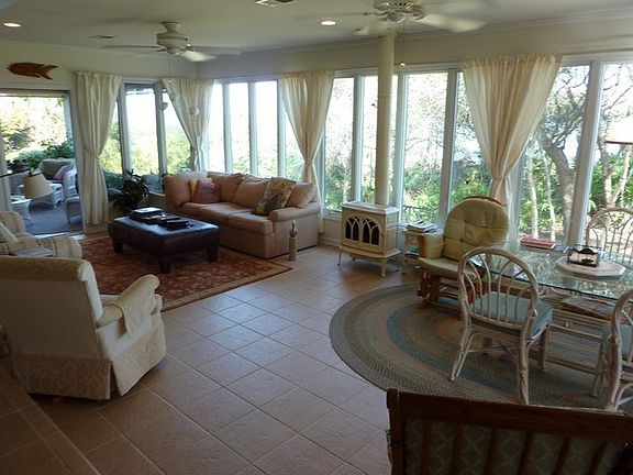 Pristine, ocean front home with great view of the ocean from living area and four bedrooms. Large updated kitchen with 6-burner gas range, under counter fridge, two sinks (one with filtered water), loads of counter space and large refrigerator adjacent flanked by two large pantry storage units, both with double shelved storage. Open living/dining area leading into sun room with screened porch on north end, open deck with fire pit on south end. Back yard landscaped to dune area. Laundry room with lots of storage, space for office and bath with shower attached. Exercise/bedroom over garage with bath with shower attached. Double car garage with large workshop and storage. Fenced, landscaped front yard, irrigation system. Alarm system.