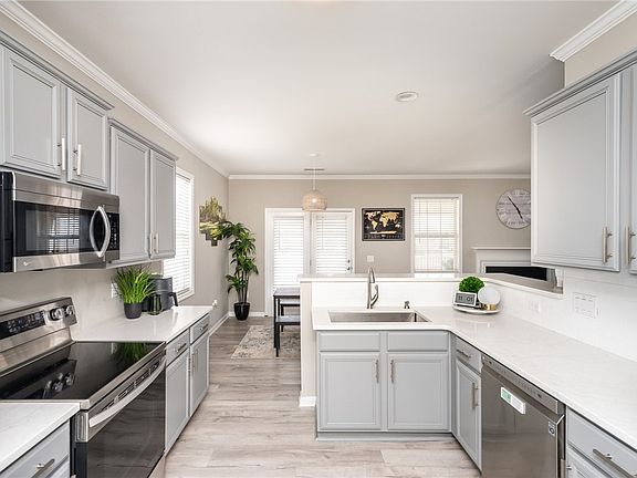 Presenting 5 Tanner Chase Way, your ideal new home! This two-story residence offers a generous 2,327 square feet of living space, boasting four bedrooms, two full bathrooms on the second floor, and a convenient half bathroom downstairs. The owner has made numerous upgrades, including a stunning brand new shower in the master bath, new LVP flooring throughout the first floor, and sleek quartz countertops in the kitchen. Additionally, the existing hardwood cabinets have been tastefully painted, new hardware pulls have been installed, and all new appliances have been added, providing both style and functionality. The interior walls have been freshly repainted, and most interior light fixtures have been replaced for a modern touch. The secondary bathroom has been updated with new cabinet, countertop, mirrors and lighting. The main living area features an inviting open floor concept with a wood-burning gas starter fireplace as the focal point. Step outside through the back door off the breakfast room to discover a spacious covered patio and a large fenced-in backyard, perfect for outdoor gatherings. The oversize garage has also been painted, walls and floor adding to the overall appeal of this meticulously maintained property. Come and explore this wonderful home today - you won't be disappointed!