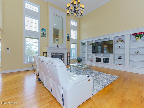 Open House: Saturday 11/8 1-3 pm. Welcome to this newly painted, stunning 6 bed, 5 bath 6,517 sq ft home within the North Colonie CSD. Highlights include upgraded California closets, a dazzling crystal chandelier, and a sophisticated sound system with speakers and intercom controls in every room. The gourmet kitchen boasts a spacious granite island, perfect for entertaining. Gleaming hardwood floors grace the first floor, and convenient 2nd-floor laundry adds to the appeal. Enjoy the enclosed heated and cooled sunroom, a 2nd-floor office with built-ins, and a finished basement (featuring an additional bedroom and full bath) that walks out to a spacious 2.5 side-load garage. With two furnaces and six zones for optimal climate control, this home ensures comfort year-round. This home has too many exquisite details to list!
