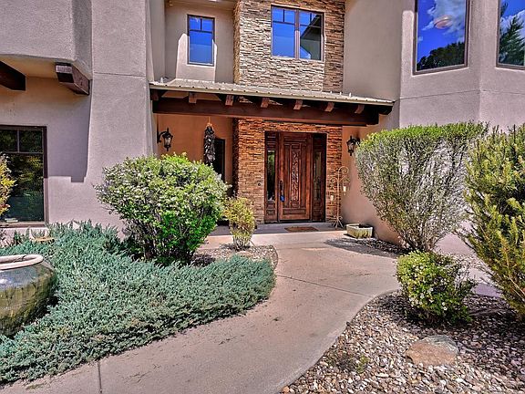 Gorgeous Custom Home Nestled on a Wooded Private Homesite in Desirable Rancho Verde! Stunning Great Room boasts Soaring 2 Level ceilings and Dramatic Fireplace to Relax by! Chef's Gourmet French Country Kitchen is an Entertainers Dream! Abundant granite counters and beautiful cabinetry! Huge Island is perfect for hosting gatherings. Elegant Dining area! Luxurious Owner's Suite offers a Resort Style Spa Bathroom for Ultimate Relaxation! 3 Bedroom's upper level, and a Main Level Bedroom and bath! Phenomenal Mountain Views! Enjoy the NM Sunshine from your Fabulous Outdoor Living Space! Close to the National Forest for Hiking, Biking! Ideal for Abq or Santa Fe commute! Live the Dream of a Rural Lifestyle Amongst the Whispering Pines, yet close to City Amenities!