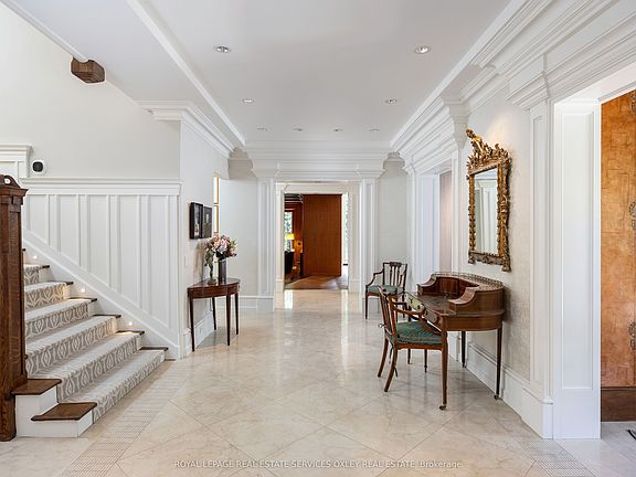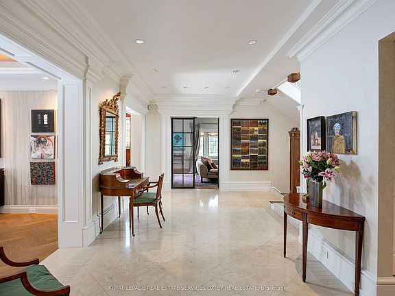 Originally designed in 1908 by celebrated architect Eden Smith, this Rosedale landmark has been brilliantly reimagined and meticulously renovated to the highest standards. With over 8,900 sq.ft. of living space, the home blends classic architectural charm with sophisticated modern design, creating a rare opportunity in one of Toronto's most coveted neighbourhoods. Set on a deep ravine lot, the property has been reinforced to protect against erosion and offers stone stair access directly to the extensive ravine trail system a private escape into nature, all while being just steps to Yonge Street, the TTC, shops, and fine dining. Inside, the home is both grand and welcoming, featuring 6+1 bedrooms, 6 bathrooms, and a private office plus a second floor family room, perfectly suited for large scale family living and entertaining. The Chefs kitchen is a showpiece, designed with two oversized islands, heated floors, a breakfast area, dual ovens (including steam), and dual dishwashers one full-size and one drawer making it both highly functional and beautifully designed. A centrally located glass-doored elevator with custom metal paneling connects all levels, complementing the homes graceful flow. The lower level is exceptionally finished, with soaring 9'6" ceilings, radiant heated tile floors in the newer section, a dedicated gym area, naturally climate controlled wine storage, a walk-in cedar closet plus a second oversized closet, and even a full second kitchen for extended family, staff, or entertaining on a grand scale. Throughout, every element has been carefully considered bespoke millwork, curated materials, and architectural details that preserve the homes character while adding contemporary luxury. This is more than a residence: it is a true Rosedale dame offered for the first time in over 20 years, updated for modern living, ready to be enjoyed for generations to come.