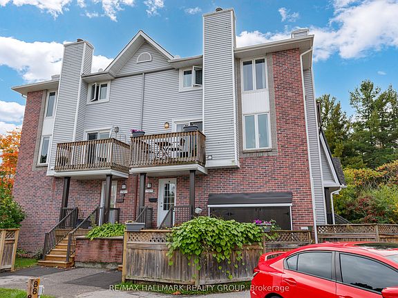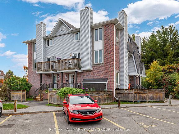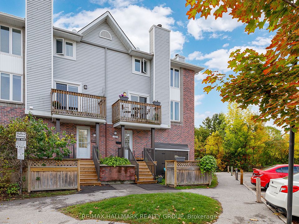 Bright and private, this 2-bedroom, 3-bath upper corner-unit condo townhouse offers the charm of a corner unit with three inviting outdoor spaces: a balcony off the living room, a private balcony from the primary suite, and a front yard. Set in a peaceful location surrounded by a natural stream, hiking trails, the Trans Canada Trail, and NCC woodlands, this home provides a serene retreat while remaining close to city conveniences. The main floor welcomes you with a spacious tiled foyer and closet. On the second level, the living and dining areas are bright and airy, featuring large windows, gleaming floors, and a cozy wood-burning fireplace; and you can step out onto the private balcony. The generous kitchen is well appointed with ample cabinetry, new counters, vinyl tile flooring, recessed lighting, and a stylish subway tile backsplash. A 2-piece bathroom with updated finishes and a separate laundry area with storage complete this level. Upstairs, both bedrooms and bathrooms have updated floorings. The generously sized primary bedroom is filled with natural light from two large windows and opens to a private balcony overlooking tranquil NCC green space. It also features a walk-in closet, a tasteful accent wall, and a 3-piece ensuite. The second bedroom, ideal as a guest room, home office, or child's room, is served by a full 4-piece bathroom. Additional highlights include a private front yard perfect for outdoor relaxation, plus surface and visitor parking on site. Conveniently located near amenities, restaurants, vibrant local breweries, shopping, parks, hiking/biking trails, DND, public transit, and highway access, this home is ideal for first-time buyers, investors, or downsizers.