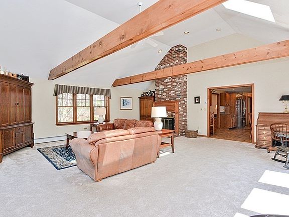 An entertainer's dream home! What an opportunity to move into one of Milford's great neighborhoods on the Hopkinton town line. This one-owner, sprawling 4/5 BR colonial includes 2 office spaces to support today's increased need to WFH. 4 HUGE floors of living space! The main level features an open kitchen with an eat in area and sightlines to the grand, cathedral ceiling FR with exposed beams and fireplace. Skylights and roof NEW in ‘22. Also a cozy study with built in shelving, formal LR and DR. Upstairs are 3 large BRs (including a main suite), a guest bath and that 2nd office. Keep going up! The top floor is perfect as a live-in suite with a BR and great room. The BRIGHT walk out LL has full size windows and a slider, bar area and game room with it’s own full bath perfect for pool goers. Summer is almost here! The large sun deck with Azek boards and a screen porch overlook a stunning, kidney shaped pool with a slate patio. Professionally landscaped, just wait until things bloom!