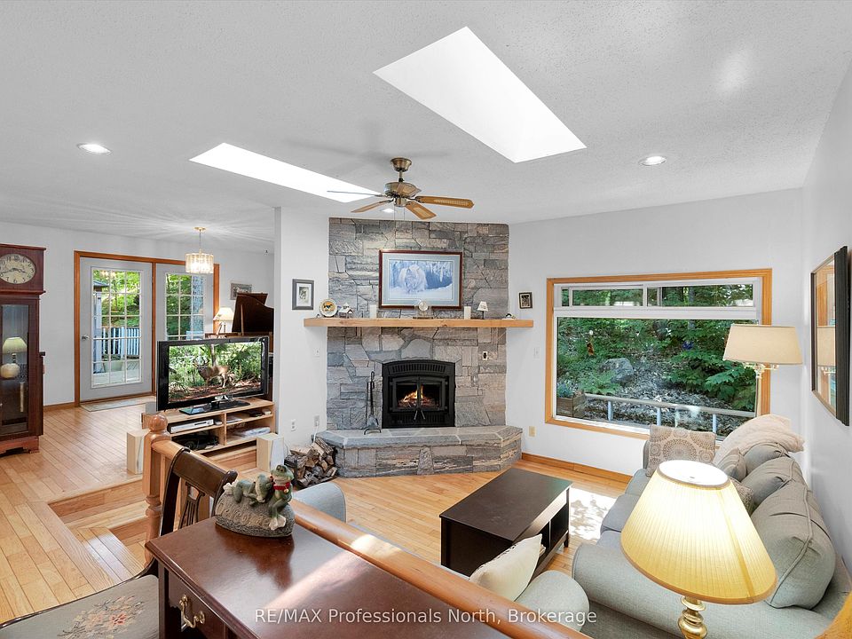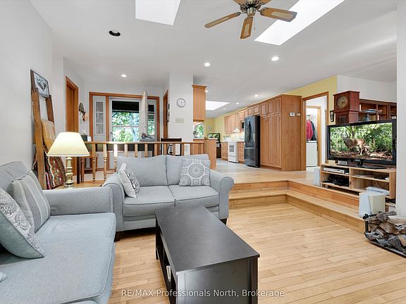 Enjoy the ease of one-level living in this sprawling 1,742 sq ft bungalow with an attached garage, perfectly situated in the charming Village of Port Carling. Just a short stroll to Indian Crescent Park on the Indian River, this well-treed, private lot offers the ideal balance of convenience and tranquility.The main floor boasts three bedrooms, including a generous primary suite with a 5-piece ensuite and direct walkout to the rear deck. A bright eat-in kitchen, dedicated dining area with deck access, and a welcoming living room with a granite fireplace featuring a wood stove insert (installed approx. 5 years ago) create inviting spaces for everyday living and entertaining. The mudroom/main level laundry room offers convenient interior access to the garage.The high, dry basement includes a partially finished family room warmed by a propane freestanding stove, plus expansive storage and utility areas with a second garage access point perfect for hobbyists or workshop space. Notable features include, central vacuum system, forced-air propane furnace, 200-amp electrical service, 10 kW backup generator, septic system & drilled well, and most windows replaced within the past 3 years. With its prime location, generous layout, and thoughtful updates, this Port Carling bungalow offers comfortable living with room to grow.