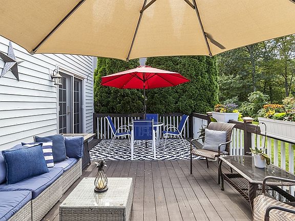 Welcome to Persimmon Woods Heights, one of Bradford’s most desirable neighborhoods. This beautifully maintained home overlooks the 18th green of Bradford CC, offering a well landscaped, flat yard with privacy. The Open layout is perfect for entertaining. First floor features hardwood floors, Large living room with recessed lighting, cozy fireplace, and French doors opening to the large deck. Eat-in Kitchen with granite countertops, tile backsplash, and stainless-steel appliances. Kitchen opens to the bright and spacious family room. Half bath and home office complete the main level. The second floor boasts a hardwood staircase, spacious bedrooms with LVP, and an updated full bath. The primary suite offers comfort and convenience with a large walk-in closet, updated bath, and attic access. Unfinished walkup attic provides perfect space to add a bonus room. Newer roof, fresh paint throughout interior, clean, dry, walk-out basement with garage access.