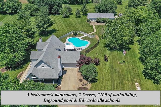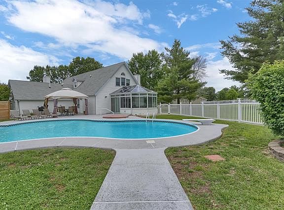 Peaceful, paradise property on 2.7ac has something for everyone! Beautifully updated home features open floor plan w/large kitchen w/staggered cabinetry, stainless appliances & granite countertops; also a formal dining, two living rooms, 1 of two master suites w/updated ensuite bath & walk-in closet; & 2nd full bath & convenient laundry location for outside access from pool. 2nd floor has 3 more bedrooms, a 2nd master suite w/ensuite bath, 4th full bath & loft area. Lower level has abundant storage space and 2 rooms (non-conforming bedrooms w/new carpet). Prepare to entertain friends & family in the fabulous "Florida" room overlooking your backyard oasis w/large Dugger saltwater pool w/diving board, inground hot tub, patio & plenty of yard space to play in. Awesome 2,160 sf outbuilding features large rec room, (would make great future pool house or in-law space) bathroom & separate garage/shop space w/office. Upgrades/pool info available. Priced below 7/2020 appraisal of $455k