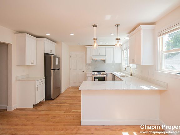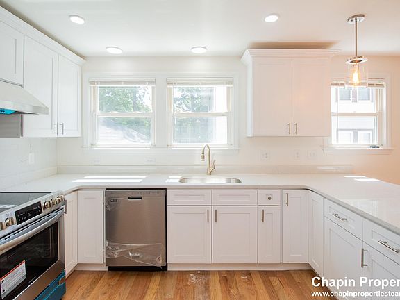 This one is not to be missed! Renovations just completed in this beautiful 4 bedroom 2 bathroom apartment located on the first floor of a multi-family. Just a few finishing touches and one coat of varnish on the floors and this gorgeous apartment will be ready! 4 large bedrooms (one with a decorative fireplace) all which feature generous closet space with lights can all accommodate a king sized bed, 2 full baths, one which has a tub and one with a stand up shower, hardwoods throughout, high ceilings, tons of natural sunlight, recessed lighting, dimmer switches in the living room and bedrooms, Nest thermostat and central AC. High end kitchen with quartz counters, white shaker cabinets, breakfast peninsula, stainless steel appliances and induction top oven. Open kitchen and living room. Nice sized private front porch. Laundry and open storage in the basement. 2 off street parking spaces included. PET FRIENDLY! 73 bus picks up directly across the street. Quick commute into Cambridge, 10-15 bus to Harvard, 20 min to MIT, 11 min to Mount Auburn Hospital, 5 min drive by car to McLean Hospital. Star Market, restaurants, shops and more all located nearby. Oakley Country Club/Golf Course across the street.