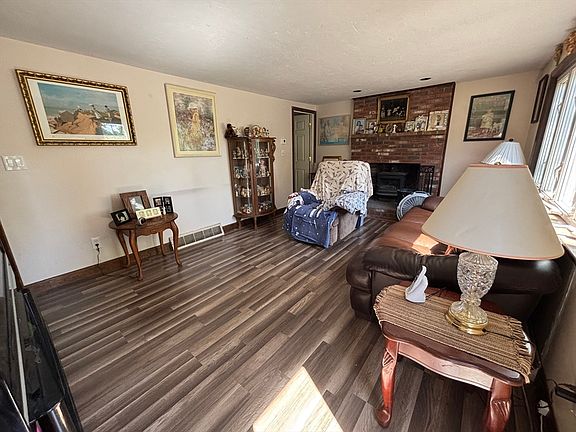 Brick fireplaceCentral airHardwood floorsLower levelNew laminate flooring