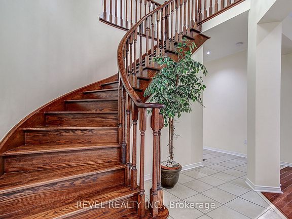 Grand staircase upon entryBright open-to-below designCarpet-free residenceLuxurious primary suiteWalk-in closetMain-floor laundryVersatile den