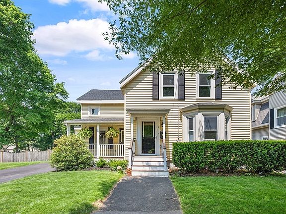 Deserving a “10” rating for curb appeal, this move-in ready Colonial has features and amenities to spare including location in a peaceful, private neighborhood and 2-story barn. A sweet front porch, 4 bedrooms, 2 full bathrooms and gorgeous hardwood flooring throughout are additional highlights. A roomy eat-in kitchen with stainless steel appliances, granite countertops and French doors to a large deck overlooking the newly landscaped backyard is open to a generously sized living room create a very livable floor plan. The spacious main level bedroom, den or office is a bonus. Plus 3 bedrooms – one is the huge primary – and oversized full bathroom are off the wraparound landing on the 2nd floor. The full basement, which is the footprint of the house, has high ceilings and bulkhead access to the yard. A home for the here and now, this renovated beauty is ready for the future, too.