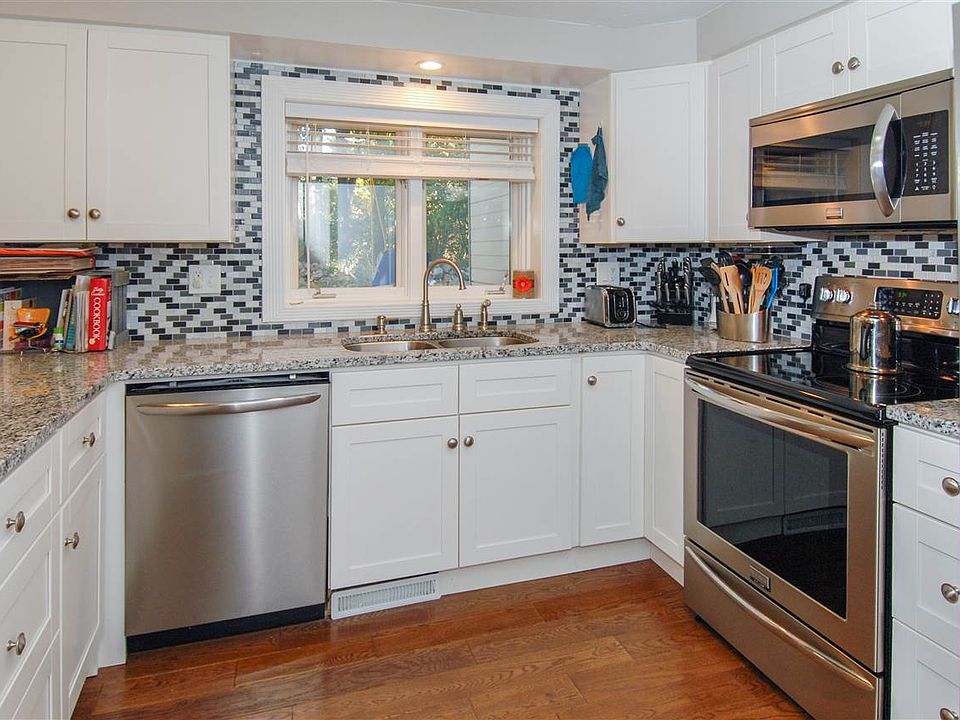 BACK ON THE MARKET due to buyer financing falling through. This completely renovated 3 Bedroom Condo at Sunview Condominiums in Derry is waiting for you to move in! High-end materials were used throughout this gem of a home, including solid core 5 panel doors, Swanstone solid surface baths and shower, and hardwood oak floors with hand-scraped planks in the Living Room and Dining Area. The Deck outside the Dining Room gives you access to the backyard and the woods behind it, where wildlife can be easily spotted. The Kitchen features solid birch cabinets, granite countertops, a large peninsula and all stainless steel appliances, including fridge, electric range, microwave and dishwasher all not even 2 years old! In the Half Bathroom on the first floor you will also find like new Samsung washer and dryer. The spacious master bedroom on the 2nd floor features 2 large closets, a Full Bath, and has its own private balcony overlooking the woods. On the same floor we have a second Full Bathroom and another spacious Bedroom, with cathedral ceiling and 2 closets. The 3rd floor consists of a Study and another bedroom with closet. You won't be lacking in storage space with large closets throughout the home, the 1 car garage and extra storage room in the partially finished basement. Walking distance from Pinkerton Academy and great commuter location for Manchester, Concord or into MA! Open House Sunday 2/17 11AM - 1PM.