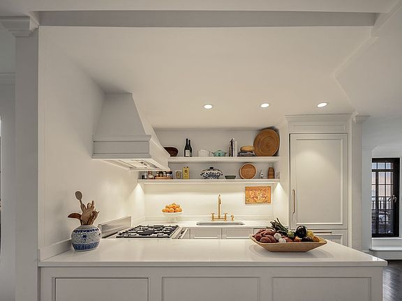 Anchoring the great room, a hand-carved Statuary Marble mantel by Chesneys crowns the wood-burning fireplace- an extraordinary focal point for both intimate evenings and grand gatherings. A private lower terrace extends the living space outdoors, overlooking the United Nations, East River, and the glittering cityscape to the south.