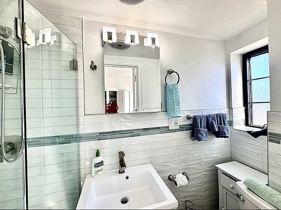 This studio boasts every imaginable renovation: windowed bathroom, kitchen with a breakfast bar and a full size refrigerator, classic light fixtures, energy efficient and noise reducing windows and a through-the-wall heating and air conditioning unit. Every detail is first rate.